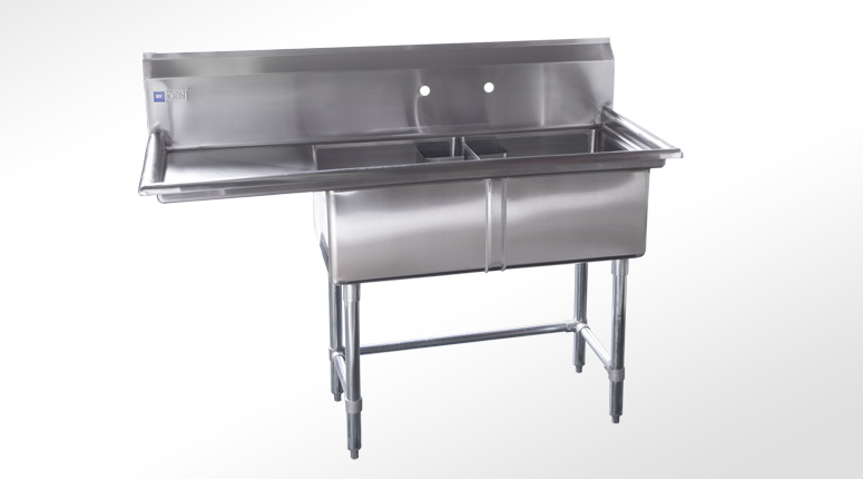 2 Compartment Stainless Steel Sink, with left DrainBoard