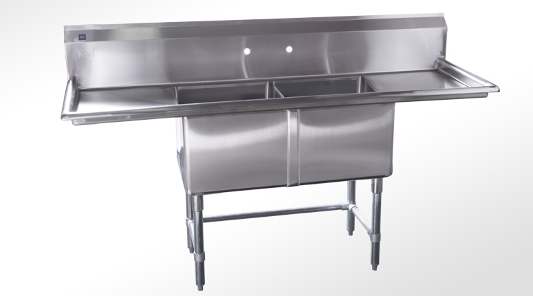 It is also perfect for domestic use in a garage, laundry room or pool house. Although the 2 Bowl Utility Sink arrives pre-welded, it requires some simple assembly. You will need to attach the legs, the hardware, and install the drain baskets (included). Please note: This sink is constructed with standard faucet holes (1.125 inch diameter, eight inches apart), but does not include a faucet. You can easily customize your sink by purchasing a separate faucet fixture.